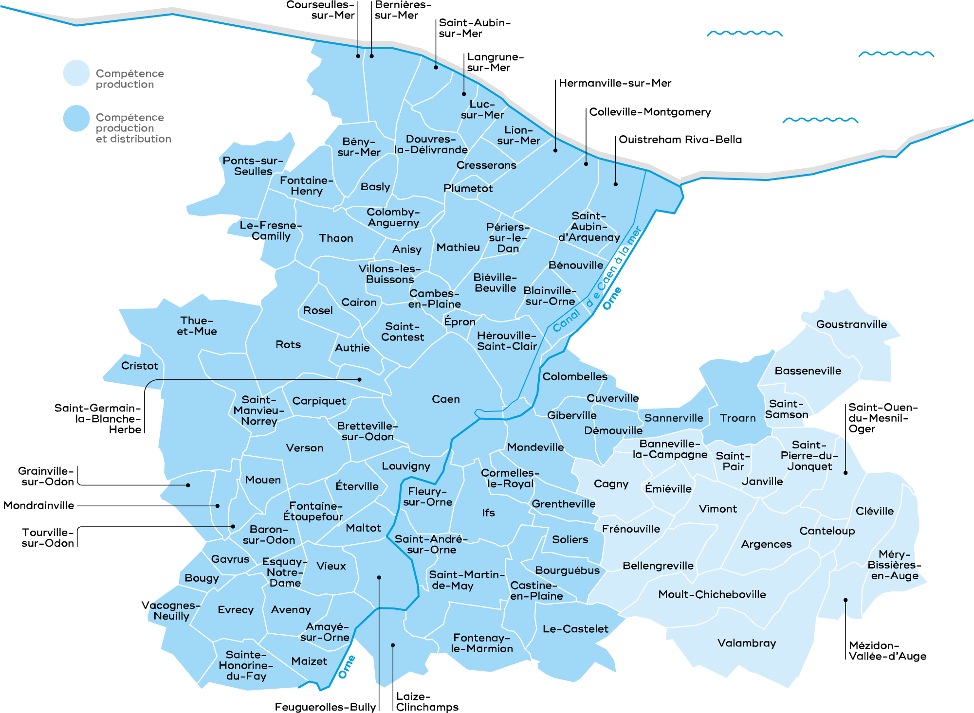 Eau du bassin caennais a pris la compétence production depuis le 1 janvier 2014. Le syndicat prélève ainsi l’eau en milieu naturel, la traite si nécessaire pour la rendre potable, puis l’achemine dans un réservoir pour une mise en distribution.