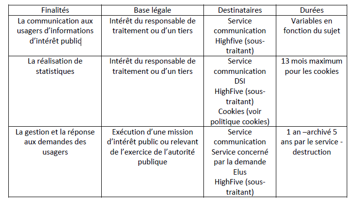Les traitements du site www.eau-bassin-caennais.fr visent à assurer la communication institutionnelle de l’administration. Les traitements permettent :